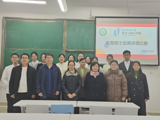 说课讲课展技能。11月23日,在数学楼501教室、502教室等五个教室举行“说课讲课竞赛”初赛,来自学科教学(数学)的38名研究生和其它专业的研究生共65人参加,经过激烈的角逐,最终12名同学进入决赛。12月3日,决赛现场邀请了教学经验丰富的王霞、郭淑利、孙兰银、潘虹、董丽、段光爽、薛艳昉等七位老师担任评委,对学生给予专业的指导。最终推荐申宁、路雪梅、罗敏宇三位同学参加校赛。赛后,副院长王霞对参赛的同学给予高度评价,并给出指导性建议,进一步提高教育硕士的专业技能。