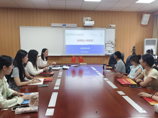 为帮助2024级研究生了解和适应新环境、明确学习目的、科学规划学习生活,顺利完成角色转变。9月8日,教师教育学院在教七楼301会议室开展了2024级研究生新生入学教育活动。研究生秘书兼辅导员常燕燕老师、2023级研究生班委代表、2024级全体研究生参加活动,会议由常老师主持。