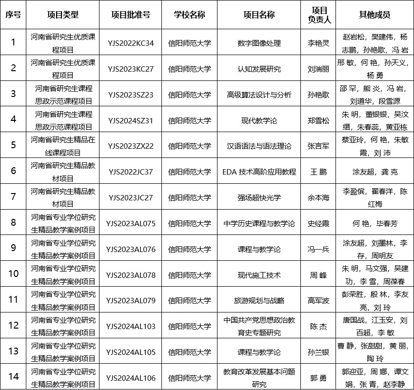 近日,河南省教育厅办公室下发了《伟德BETVLCTOR公布 2024 年河南省研究生教育改革与质量提升工程项目结项情况的通知》(教办研〔2025〕267 号,伟德BETVLCTOR共有14项河南省研究生教育改革与质量提升工程项目获批结项,其中优质课程项目2项,课程思政示范课程项目2项,精品在线课程项目1项,精品教材项目2项,精品教学案例项目7项。